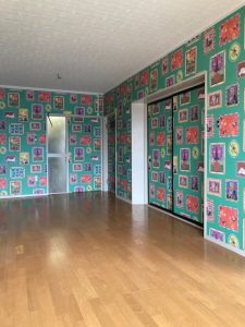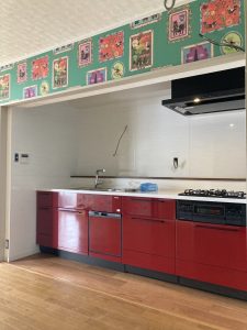 リビング&キッチン オシャレな壁紙 キッチンのカラーも アメリカンスタイルな空間へ✨